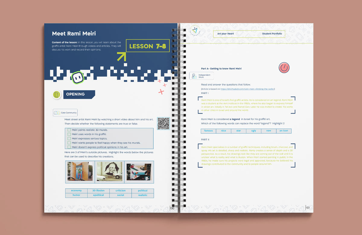 Created custom teacher guides and student portfolios to complement an Israeli high school's digital English curriculum.